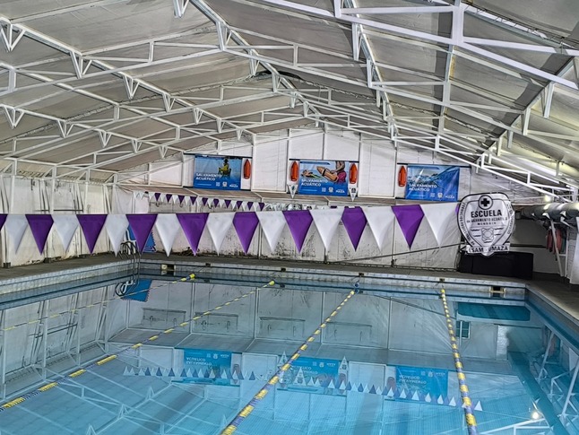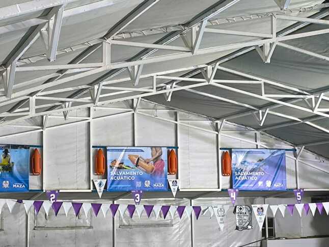 En el natatorio, por su parte, se finalizó la instalación de la cartelería correspondiente a los andariveles del 1 al 5, utilizando listones de madera para su correcta disposición.