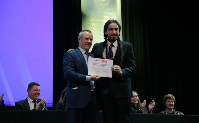 En 2023 fue abanderado, y hoy celebra su graduación con honores, habiendo sido distinguido como el mejor promedio entre los egresados 2024.