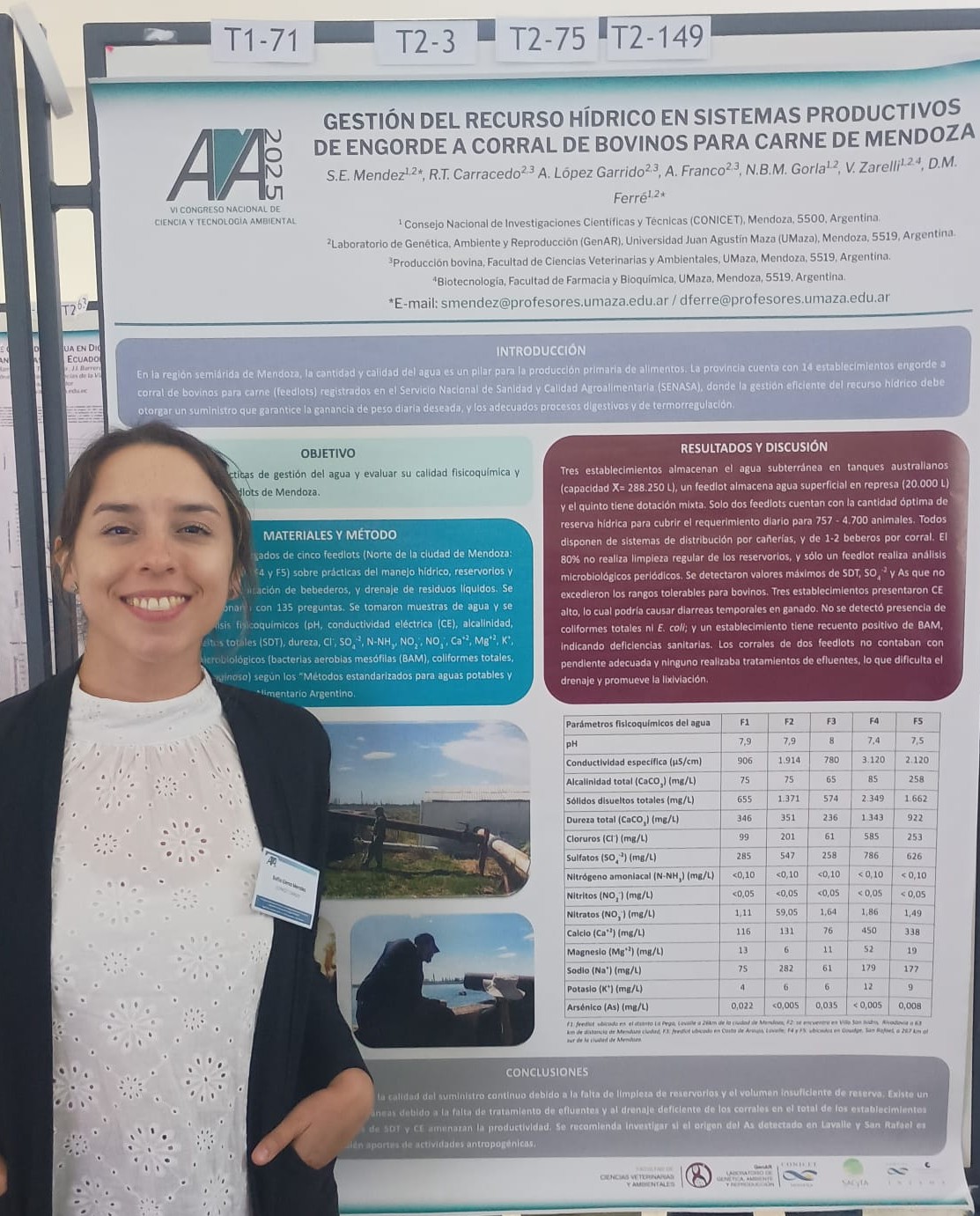 | 28 | Calidad y consumo de agua de bebida de bovinos de engorde a corral en consideración al bienestar animal | Vet. Rocío T. Carracedo (UMAZA) | |