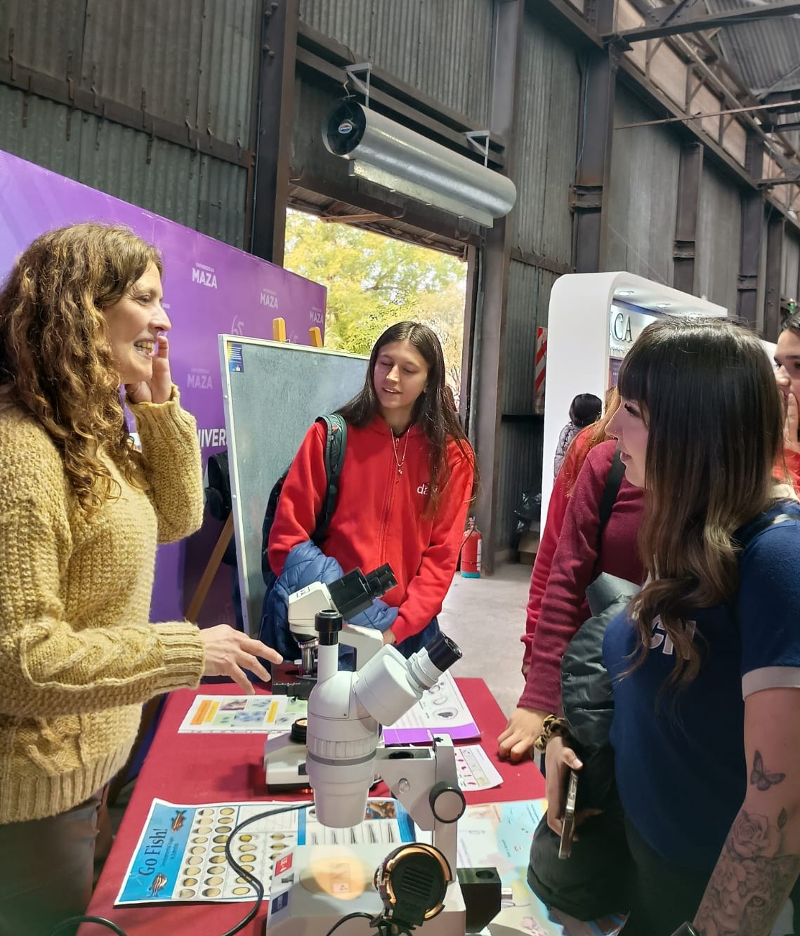 Participación en la Expo Educativa Mendoza, Nave UNCuyo, 2025. Imagen izq.: Nora Gorla y Analía Pedrosa. Imagen med.: Daniela Ferré. Imagen der.: Valeria Zarelli, 2025.