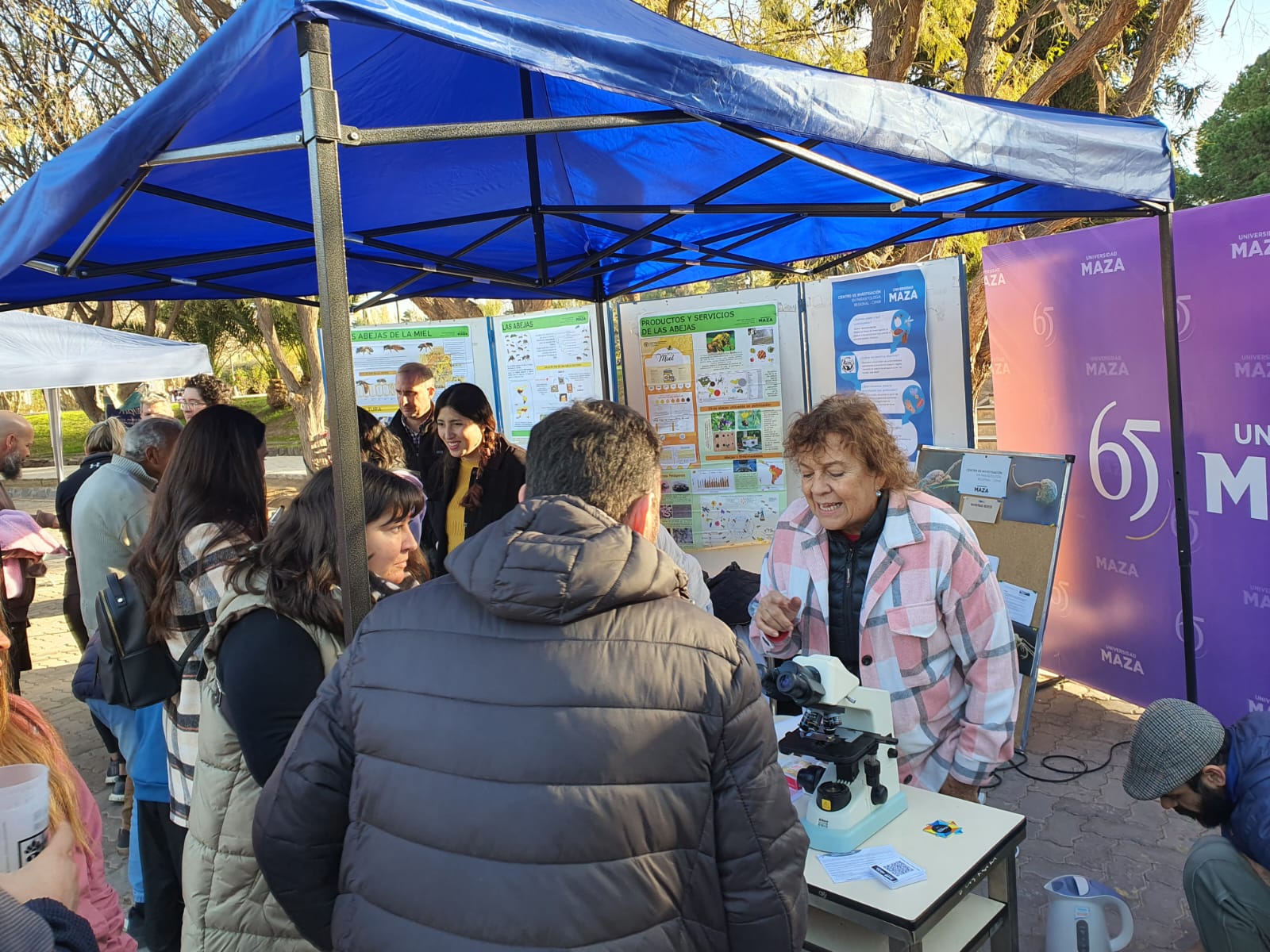 Participación en Comunicación Pública de la Ciencia, 2025. Imagen izq.: Nora Gorla. Imagen der.: Martina Caliri, Valeria Zarelli, Nora Gorla y Sofía Mendez.