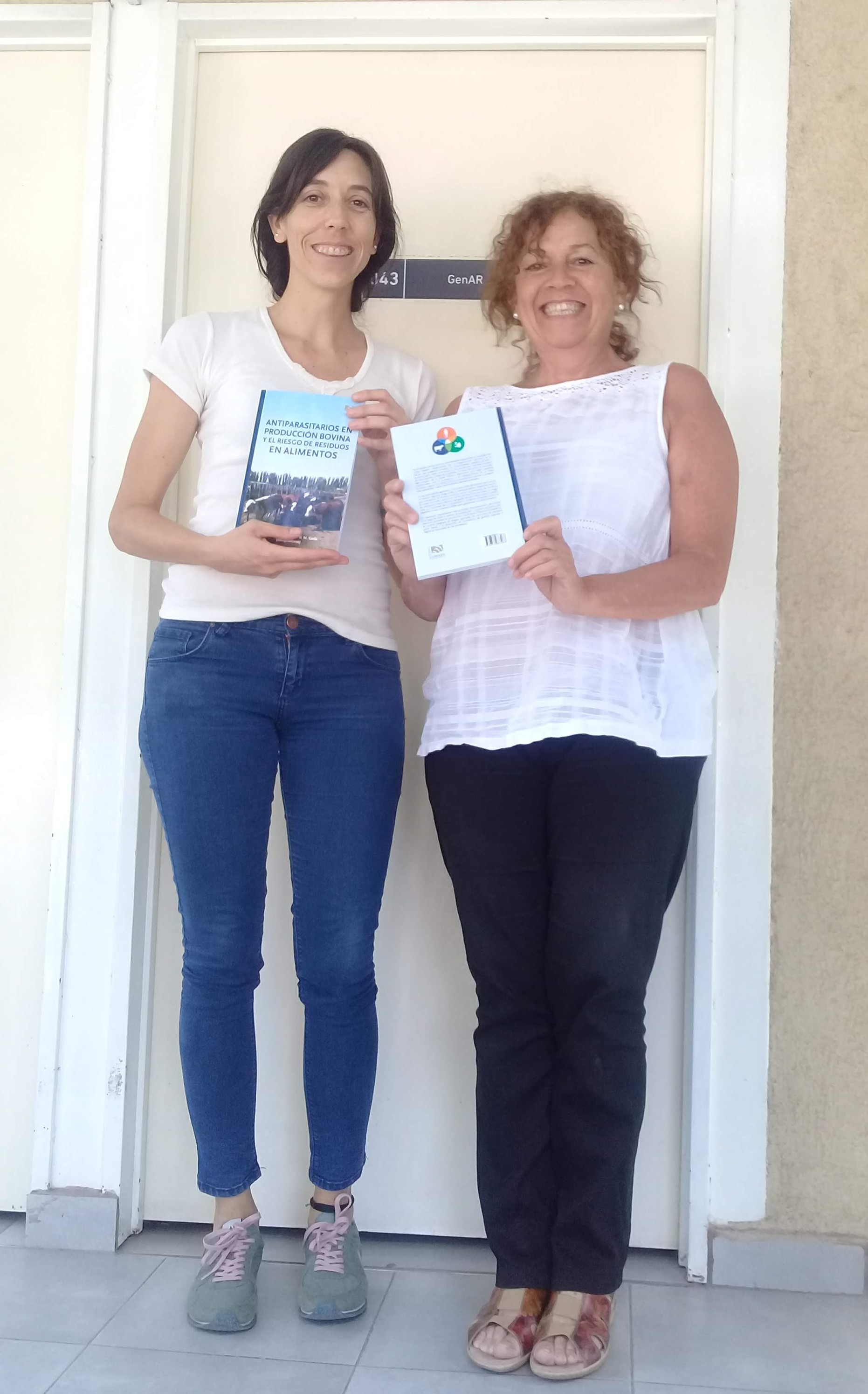 Publicación del libro "Antiparasitarios en producción bovina y el riesgo de residuos en alimentos". Izq. Daniela Ferré y der. Nora Gorla.