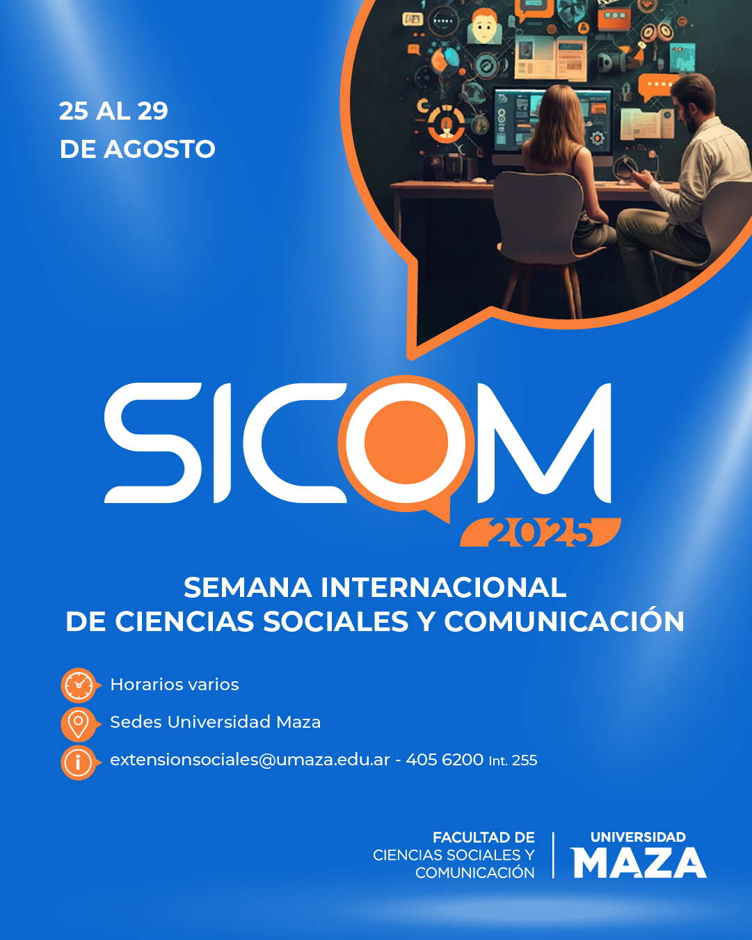 Del lunes 25 al viernes 29 de agosto, la Universidad Maza abrirá sus puertas a una nueva edición de la Semana Internacional de las Ciencias Sociales y de la Comunicación (SICOM), una de las actividades académicas más destacadas del año.