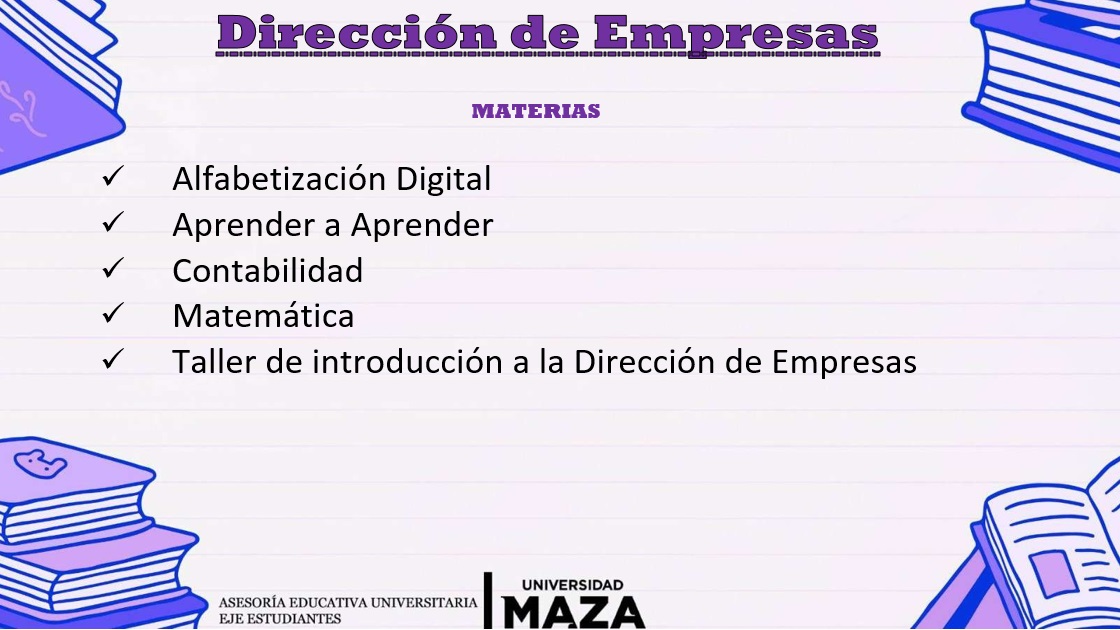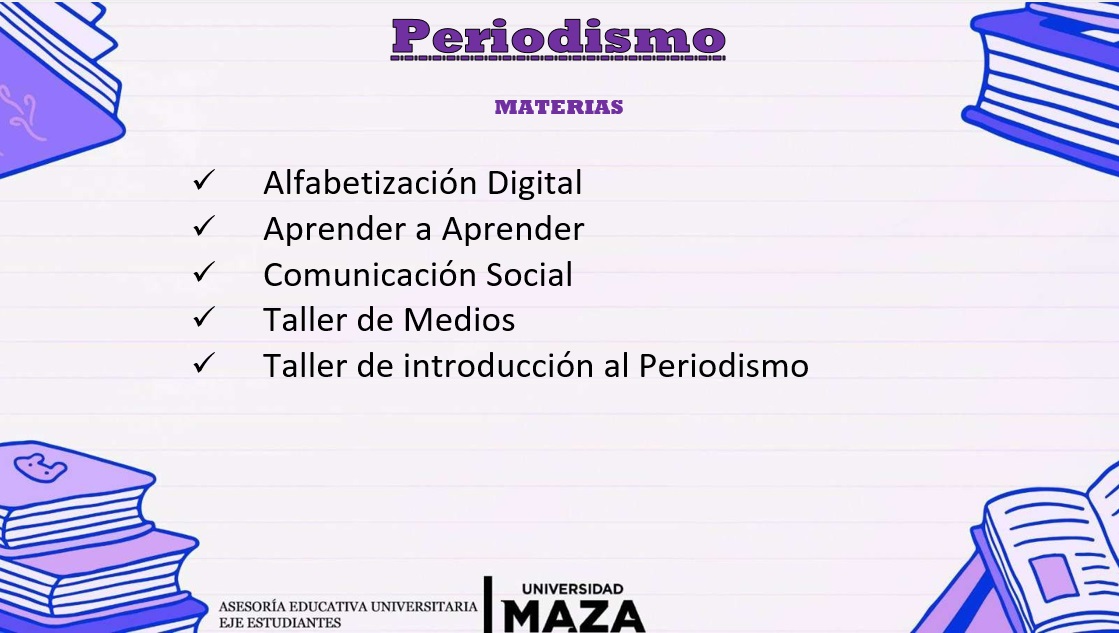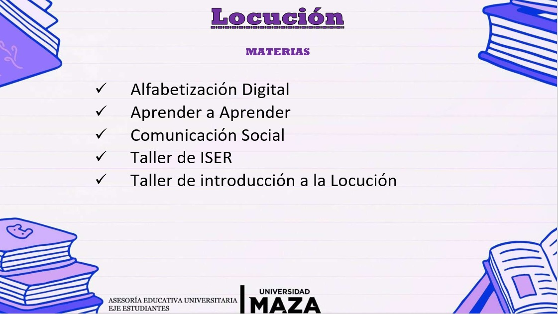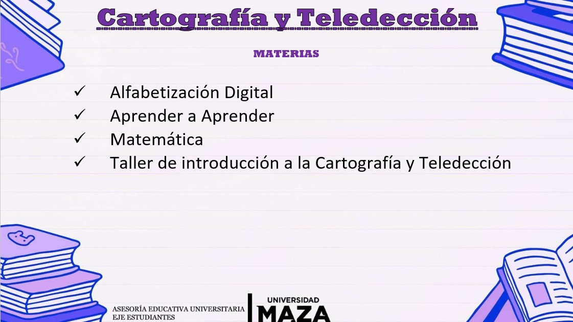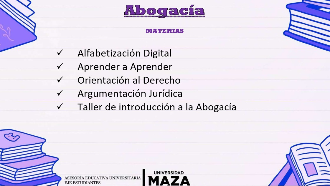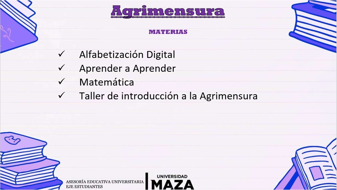 Orientado a todos los jóvenes y adultos que desean estudiar en la Universidad Maza, este programa busca nivelar conocimientos y contribuir al desarrollo de capacidades que favorezcan la inserción de los aspirantes a la vida universitaria.![]()