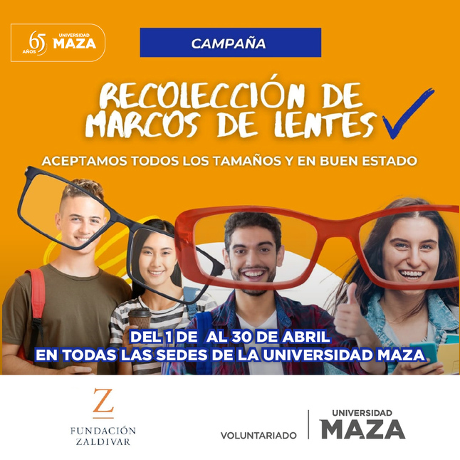A través de su programa de Voluntariado, la Universidad Juan Agustín Maza se suma a la campaña solidaria “Recolección de marcos de lentes”, que busca reunir marcos de anteojos de todos los tamaños y en buen estado para ser donados a la Fundación Zaldívar. Esta organización será la encargada de destinarlos a personas que más los necesiten.