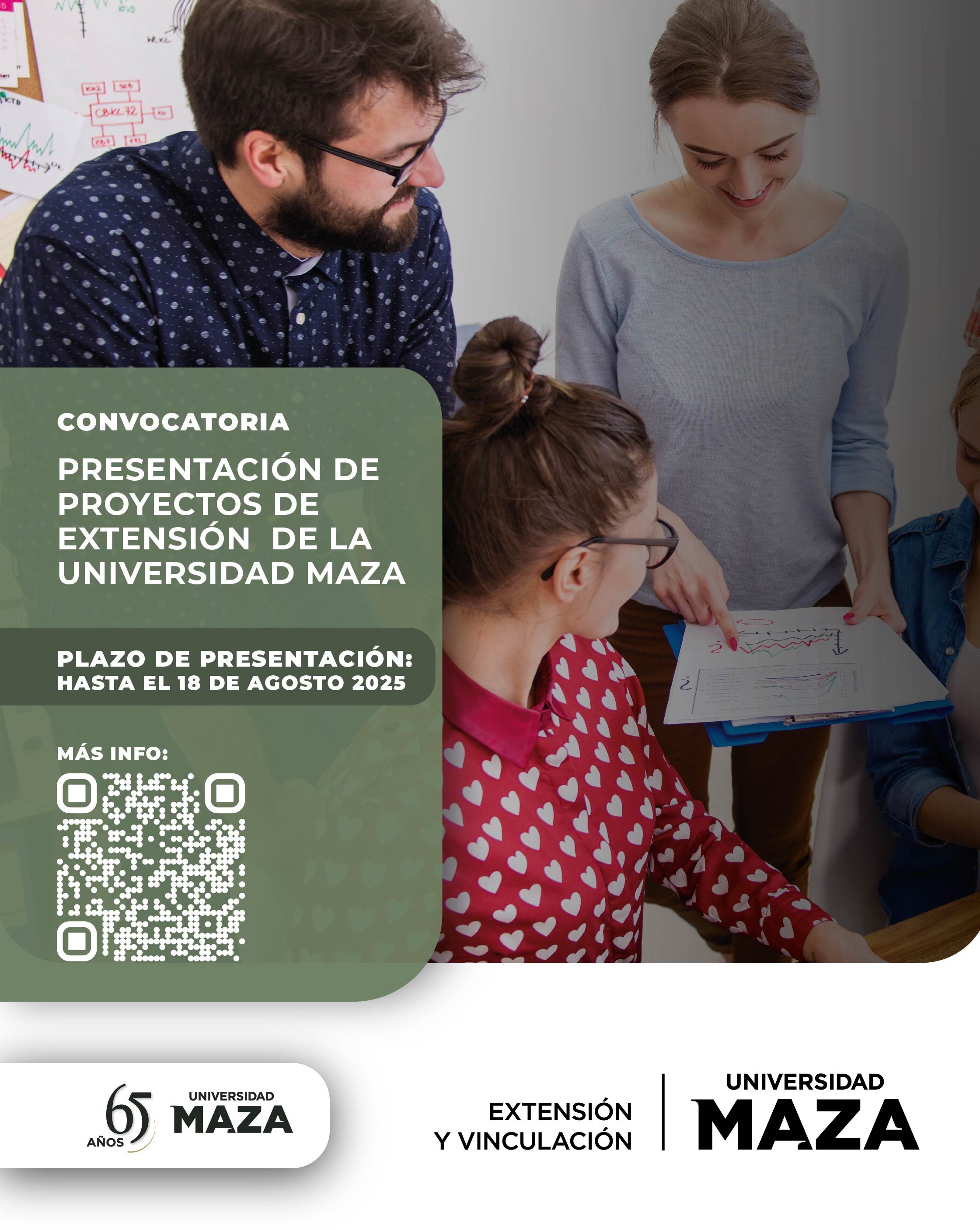 La Universidad Juan Agustín Maza informa que se encuentra abierta la Convocatoria 2025 para la presentación de proyectos de Extensión. El plazo para la presentación se extiende hasta el 25 de agosto de 2025.