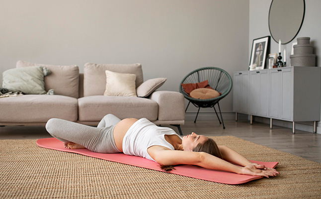 Se pueden realizar movimientos sentadas y acostadas boca arriba con las rodillas flexionadas o también de costado en posición de dormir con un almohadón entre las piernas. El trabajo boca arriba debe durar pocos minutos, ya que el peso del bebé dificulta el retorno venoso en dicha posición.