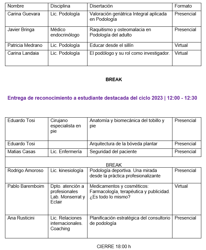 Entre los momentos destacados de la jornada, se entregará un reconocimiento especial a la estudiante con el mejor promedio del ciclo académico 2023, un logro que refleja el compromiso y la excelencia en el ámbito de la salud podológica.
