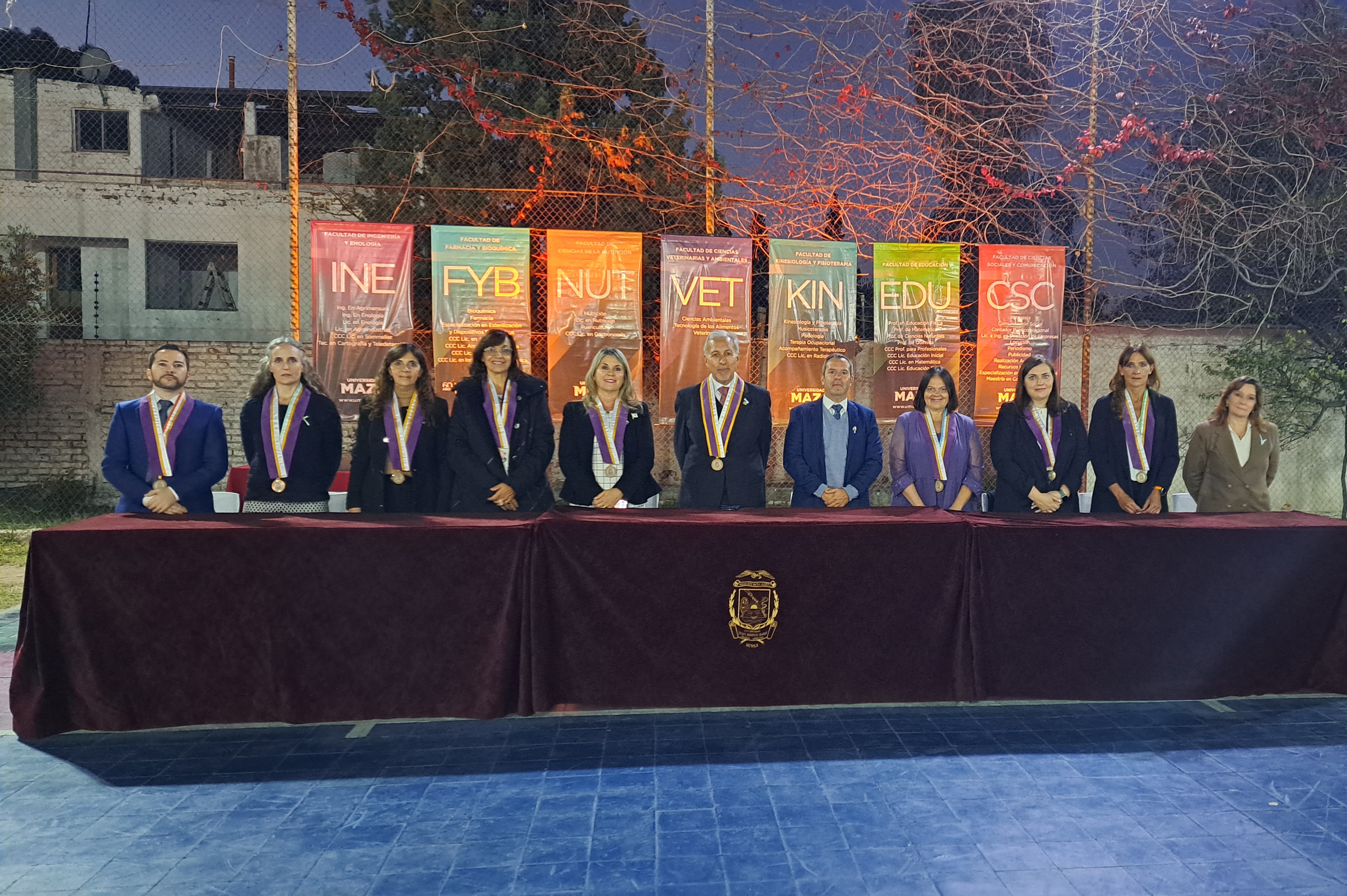 Es por ello que este solemne acto contó con la presencia del rector, Prof. Méd. Daniel Miranda; la vicerrectora académia, Mag. Amalia Salafia; el gerente de Inversiones y Finanzas, Cdor. Gustavo Moyano; autoridades de facultades y colegio secundario, así como miembros de la Honorable Asamblea de Asociados y de la Fundación Maza. También participaron docentes y administrativos de la institución y una gran cantidad de familiares, amigos y compañeros que acompañaron a los condecorados.